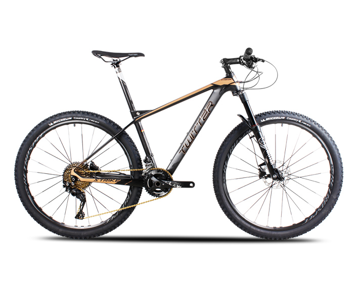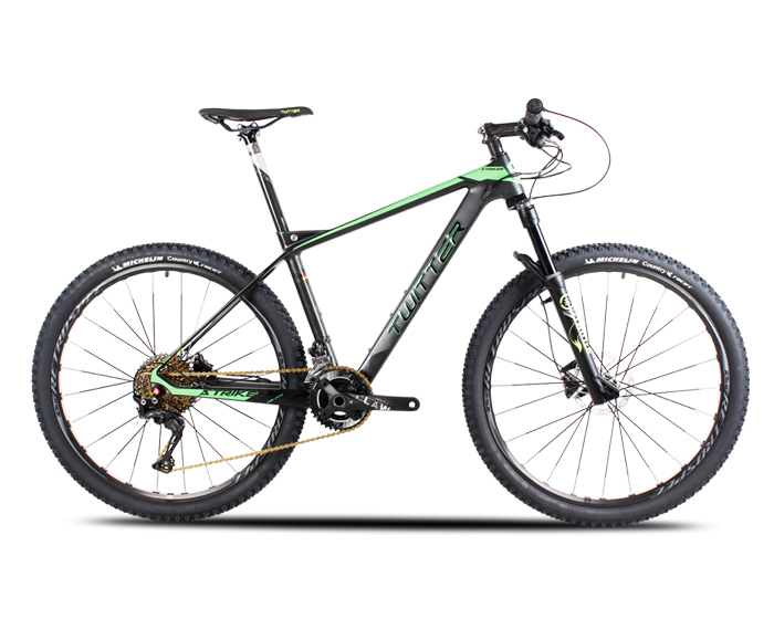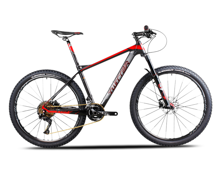 XC级碳纤维车架搭配镁铝合金后桥金桶轴线控气叉、SHIMANO XT/M8000-22速变速系统搭配SHIMANO油刹系统、RS四轴直拉扁条内边CNC桶轴轮组搭配米其林RACER轻量全地形外胎。整车仅重11.3kg,27.5寸轮径、更有黑红、黑金、黑深绿、黑荧绿四款炫酷颜色可供挑选。越野全地形山地车想你所想。